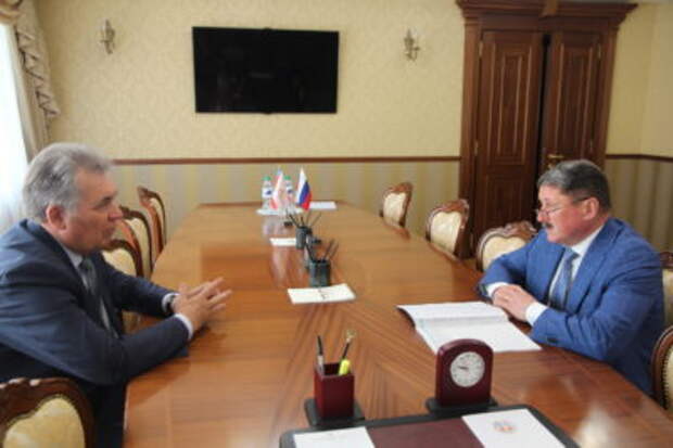 Сегодня, 18 мая 2022 года, уполномоченный по защите прав предпринимателей Андрей Осипов встретился с председателем Алтайского краевого Законодательного Собрания Александром Романенко.